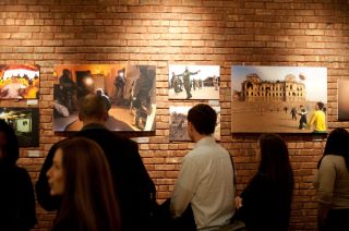 The veteran made his way across the first floor and took the elevator up to the third floor. There were so many people in the gallery that he could not see the photos on the walls. He had to squeeze people aside just to look at them.