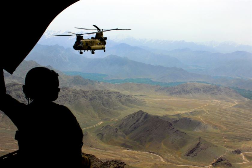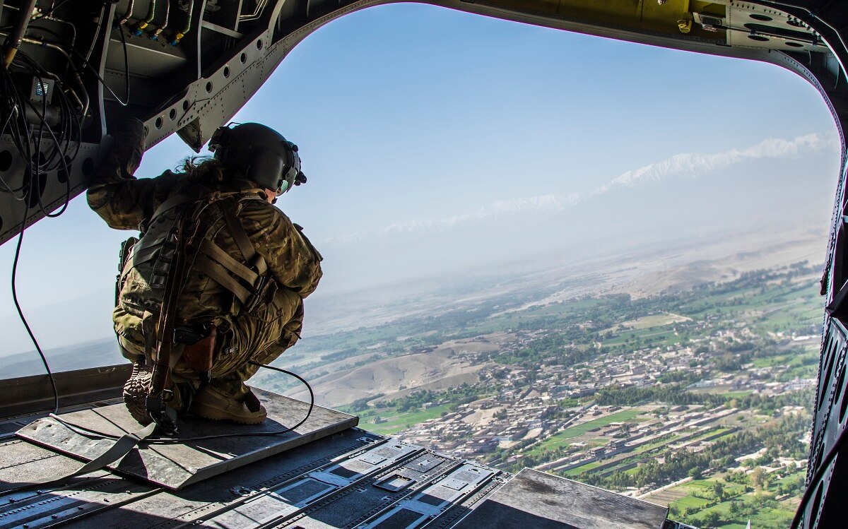 When the Washington Post began running The Afghanistan Papers, its recent series on the ineptitude of the US military mission in Afghanistan, I was sure that one of the articles would feature a photograph of a US soldier perched on the opened back ramp of a Boeing CH47 Chinook looking out over an Afghanistan landscape. Such photos are ubiquitous in articles about the Afghanistan War, and it’s easy to see why. The image of the solitary soldier looking backward and downward at the “Graveyard of Empires” seems to be an apt visual symbol for how Americans can only know Afghanistan from a distance, if at all, and understand their deployments only in hindsight.