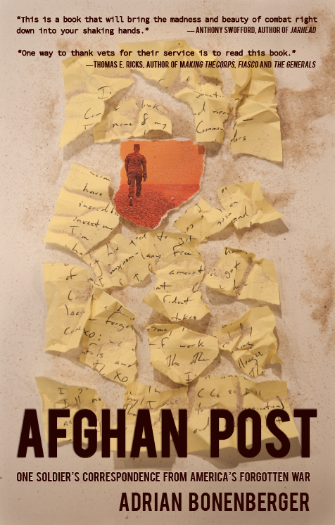 Adrian Bonenberger’s Afghan Post: One Soldier’s Correspondence from America’s Forgotten War was published in 2014 by The Head and The Hand Press.