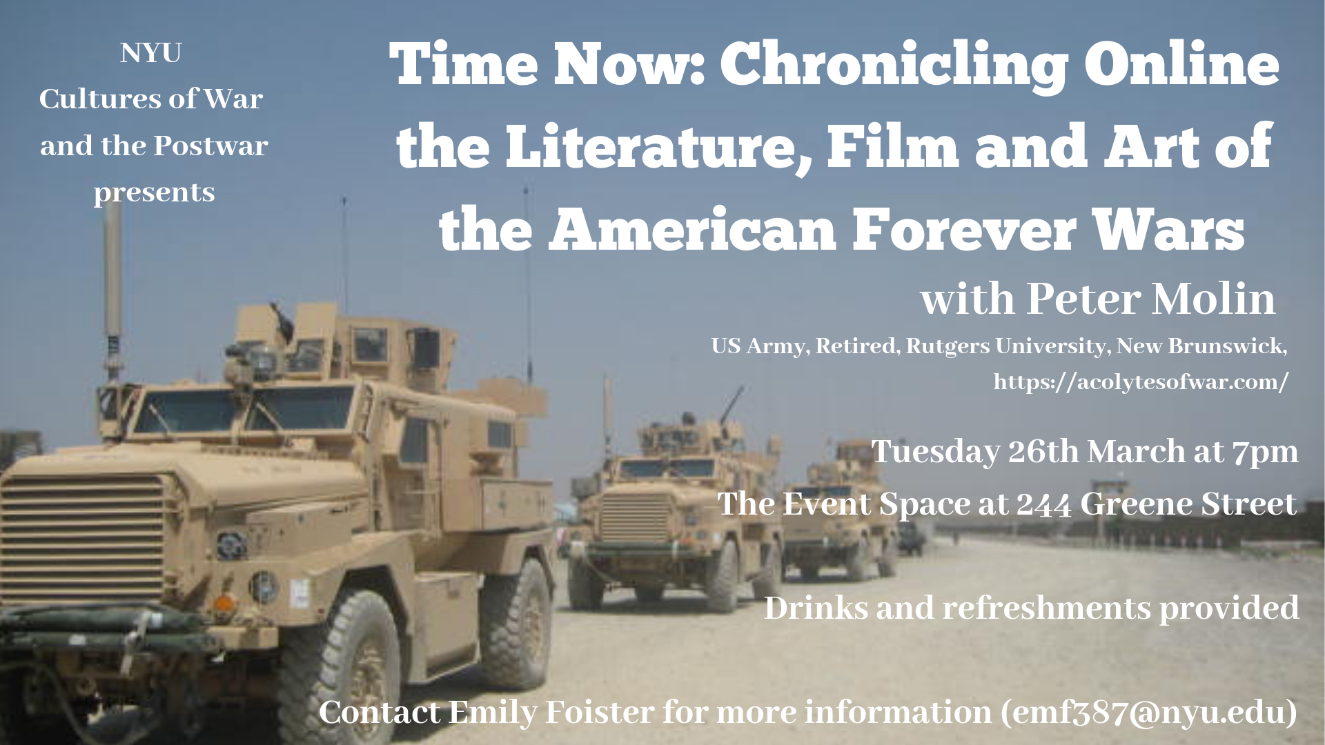 Non-fiction portraits of CONOPs are scattered throughout books on Iraq and Afghanistan, but we’ll focus on fictional and artistic depictions here. Before we get rolling (pun), I’ll recommend the mini-series Generation Kill and Colin Halloran’s volume of poetry Shortly Thereafter for their representations of vehicle movements in Iraq and Afghanistan, respectively.